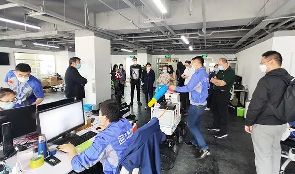 (北京市科技委員會(huì)科技冬奧專班對(duì)入圍企業(yè)進(jìn)行現(xiàn)場(chǎng)調(diào)研,圖為大陸智源CEO高源為專班小組講解演示機(jī)器人產(chǎn)品)