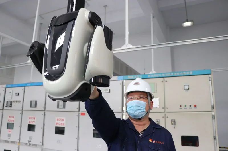室外巡檢機器人具有擬人化的形態(tài)與功能。機器人頭部的一雙“眼晴”,分別是紅外檢測系統(tǒng)和高清攝像設(shè)備,可對謝莊站室外設(shè)備共計1700巡視點進行全方位精細化監(jiān)測,巡視全程只需3個小時。巡檢機器人底部通過四驅(qū)轉(zhuǎn)輪完成前進和轉(zhuǎn)彎的動作,巡視完畢后或者電量不足時,巡檢機器人會自主返回充電房進行充電。