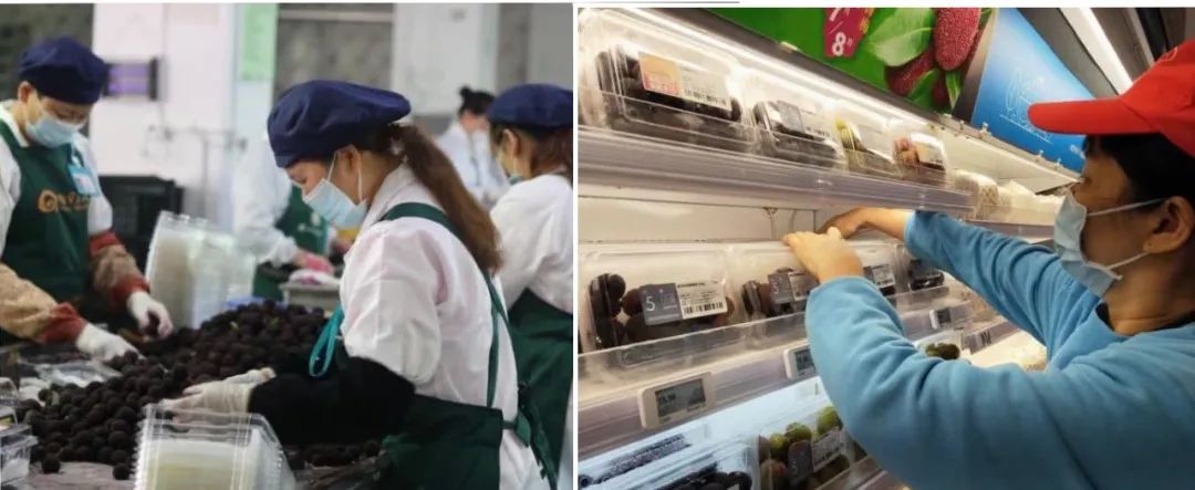 與此同時,阿里巴巴通過數(shù)字化供銷鏈路,也大大提升了“盒馬村”農(nóng)產(chǎn)品的流通效益,讓生產(chǎn)者實實在在地享受鄉(xiāng)村數(shù)字經(jīng)濟的惠利。在供銷環(huán)節(jié),“盒馬村”的每一盒楊梅都有“身份證”,從采摘、運輸、到進店銷售、最后配送到消費者的全鏈路過程,每個環(huán)節(jié)都有“數(shù)”可循,用門店 RF 槍掃碼,即可知道楊梅從源頭到餐桌的游走路徑。在銷售端,利用數(shù)據(jù)提煉用戶的購買偏好,根據(jù)不同需求,提前推送次日采摘量的給農(nóng)戶,農(nóng)戶收到訂單后開始采摘,保證貨量充裕、同時又保證商品新鮮。