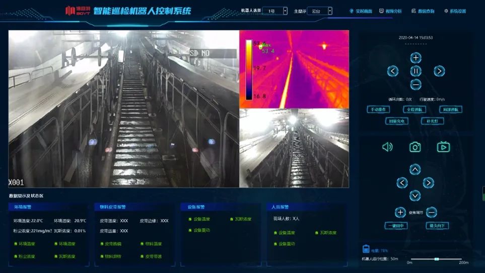 BYT-I型巡檢機(jī)器人實(shí)現(xiàn)真正的的智能化,結(jié)合人工智能、大數(shù)據(jù)、物聯(lián)網(wǎng)等技術(shù)為長廊、坑道內(nèi)“帶式輸送機(jī)巡檢”等工業(yè)環(huán)境提供一套智能、高效、安全的解決方案。系統(tǒng)由環(huán)境監(jiān)測管理模塊、設(shè)備管理檢測模塊、輸送機(jī)生產(chǎn)檢測模塊、人員安全管理檢測模塊組成,智能化輔助系統(tǒng)組成,集環(huán)保、安全、智能等功能于一身。