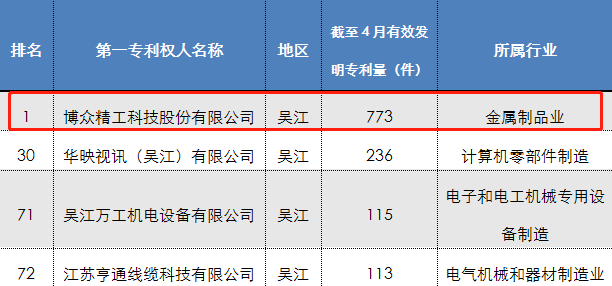 喜訊 | 博眾榮登江蘇制造業(yè)企業(yè)發(fā)明專利百強(qiáng)榜榜首