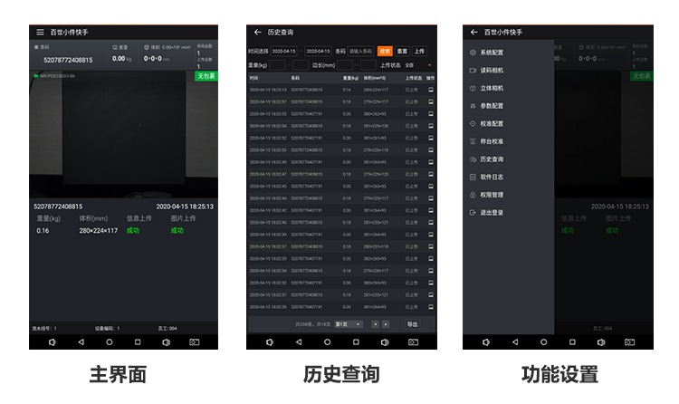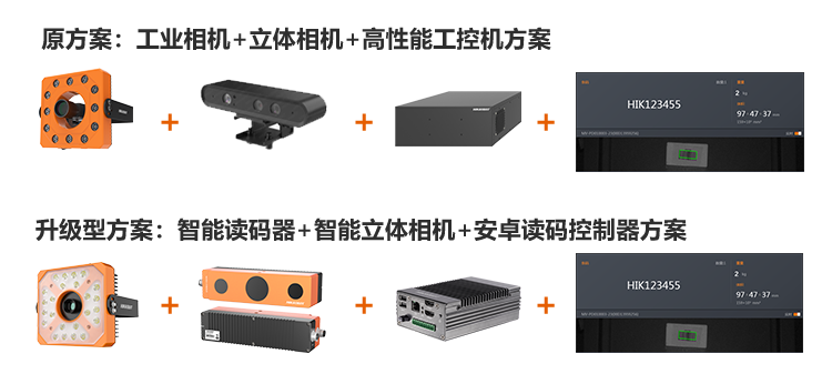 升級(jí)版方案智能讀碼一體化套件內(nèi)置深度學(xué)習(xí)芯片,搭載了海康深度學(xué)習(xí)讀碼算法,可直接輸出包裹條碼信息,新一代雙目立體相機(jī)將體積測(cè)量算法內(nèi)置于相機(jī)內(nèi)部,可通過(guò)SDK接口直接獲取體積數(shù)據(jù),無(wú)需后端PC處理。方案對(duì)工控環(huán)境的需求大幅降低,采用一顆安卓主板控制器即可完成數(shù)據(jù)融合輸出。