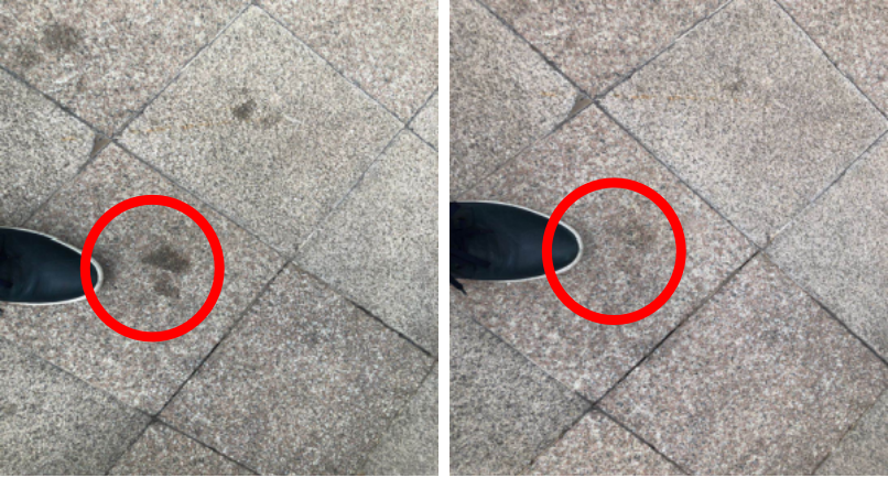 食用油、重機油...地面油污防不勝防,陳舊油污致使地面斑駁難看。
