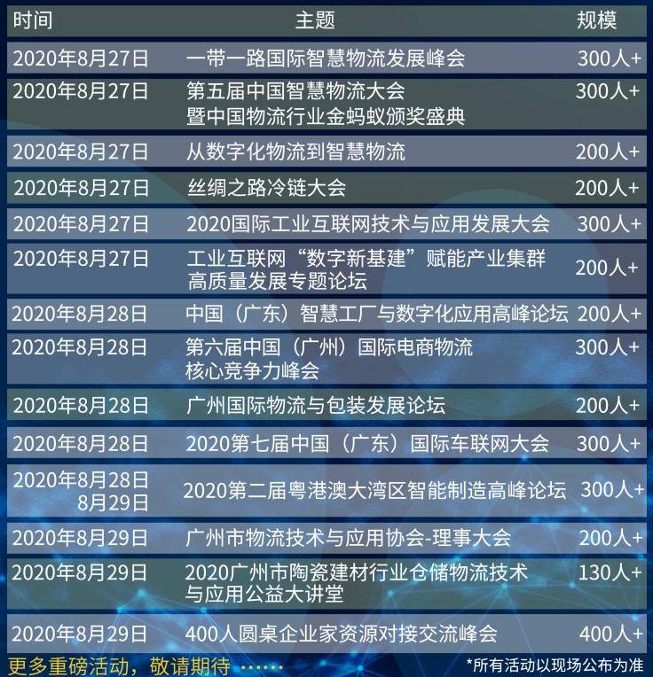 漢諾威LET中國廣州物流展同期將舉辦十余場論壇和會議,圍繞 “智能制造,智慧物流——擁抱智慧物流新時代”的展會主題,并結(jié)合國家地方政策,邀請行業(yè)權(quán)威專家進(jìn)行解讀和分享,聯(lián)結(jié)物流最前沿資訊,在交流中幫您開闊思路、找準(zhǔn)方向。