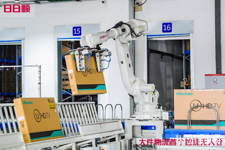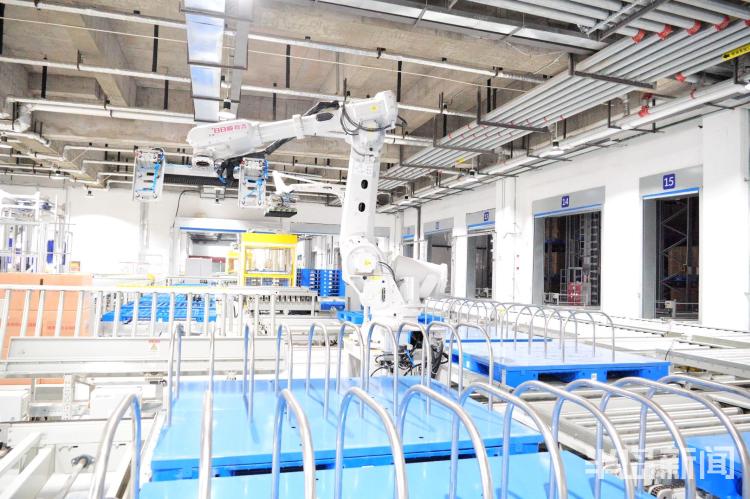 該項目總占地238畝,總投資4億元,倉庫總面積7.8萬平方米,主要分為大件平面?zhèn)}、高架倉、智能AGV倉、全品類無人倉4個部分。其中,全品類無人倉占地20畝,建筑面積1.8萬平米。在日日順智能倉儲中心,記者看到用戶選購好的寶貝要經(jīng)歷掃描入庫、貨物碼垛、智慧倉儲、貨品分揀、自動化運輸等程序,而進倉并不是一件簡單的事,以前是人工掃描入倉,而現(xiàn)在全部采用數(shù)字智能化掃描,號稱“鷹眼偵察兵”的全景掃描技術(shù),為這些大家伙們進行全景掃描,完整獲取產(chǎn)品圖像和各項數(shù)據(jù),同一天有2.4萬件大寶貝一起掃描入庫比人工掃描效率高80%,這就是數(shù)據(jù)智能化。信息自動采集之后要怎么進倉?當(dāng)然是機器人搬運,在這里系統(tǒng)根據(jù)大家伙們的掃描尺寸自動匹配關(guān)節(jié)機器人進行碼垛作業(yè),“身懷絕技”的機器人能夠?qū)崿F(xiàn)動作起落間自主避障,安全準(zhǔn)確地將產(chǎn)品放置對應(yīng)托盤,從流水線搬運到碼垛完成用時僅10秒鐘,單臺機器人最大可以提起450公斤重的東西。