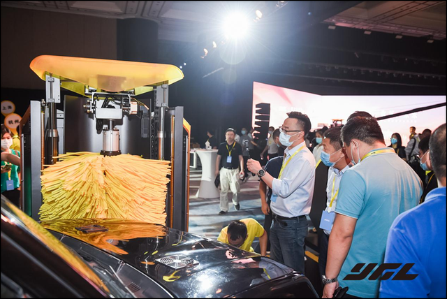浙江驛公里智能科技有限公司近日在杭州國(guó)際博覽中心發(fā)布AI智能洗車機(jī)。驛公里智能創(chuàng)始人兼CEO施恒之、首席科學(xué)官陳思渝、CTO 季錕介紹說(shuō),新的洗車機(jī)首次將機(jī)器人、人工智能、5G物聯(lián)等前沿技術(shù)結(jié)合應(yīng)用于洗車行業(yè),可實(shí)現(xiàn)多臺(tái)機(jī)器協(xié)作洗同一輛車輛,6臺(tái)機(jī)器同時(shí)清洗一輛車,最快55秒完成清洗。