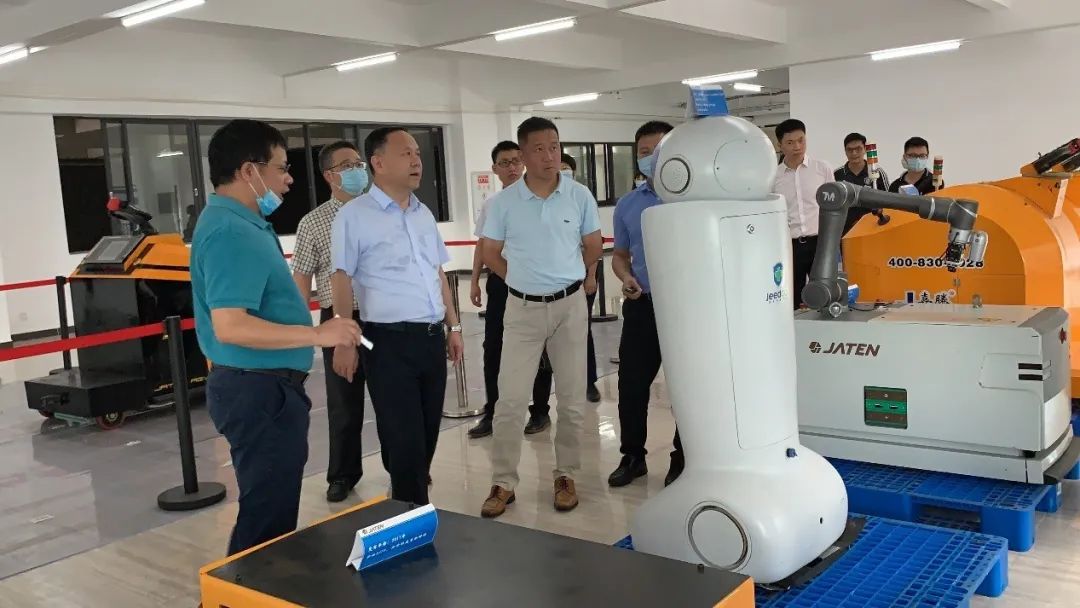 6月18日,佛山市副市長趙海攜市區(qū)鎮(zhèn)街各級領(lǐng)導(dǎo)蒞臨嘉騰參觀和調(diào)研,趙海副市長一行參觀了嘉騰的AGV生產(chǎn)車間并與嘉騰董事長陳友、副總裁陳洪波舉行座談。