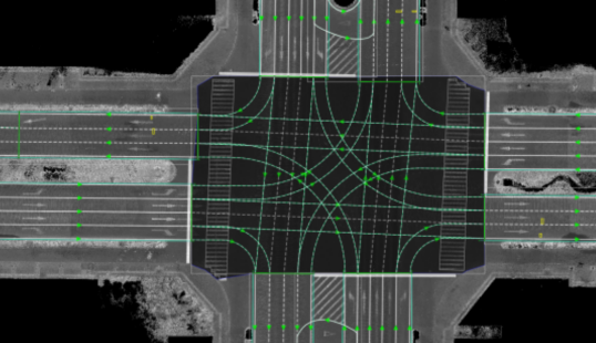 對獲得的這種高精度環(huán)境地圖進(jìn)行分析標(biāo)注之后,就能獲得高精地圖,包含很多對自動駕駛非常重要的信息。比如道路信息、車道的位置、周邊的環(huán)境信息、各種道路標(biāo)識、紅綠燈位置等,這些信息都是無人駕駛能夠遵守交通規(guī)則并正常運(yùn)行得基礎(chǔ)。
