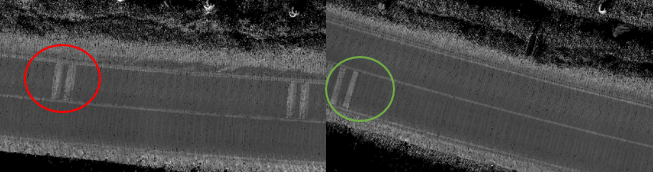 左:定位不準(zhǔn),車道線模糊 右:定位準(zhǔn)確,車道線清晰