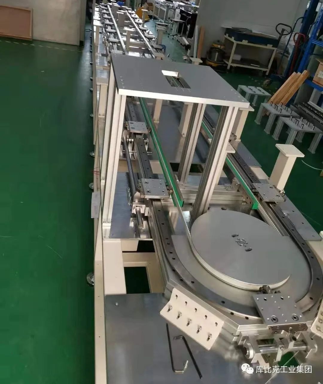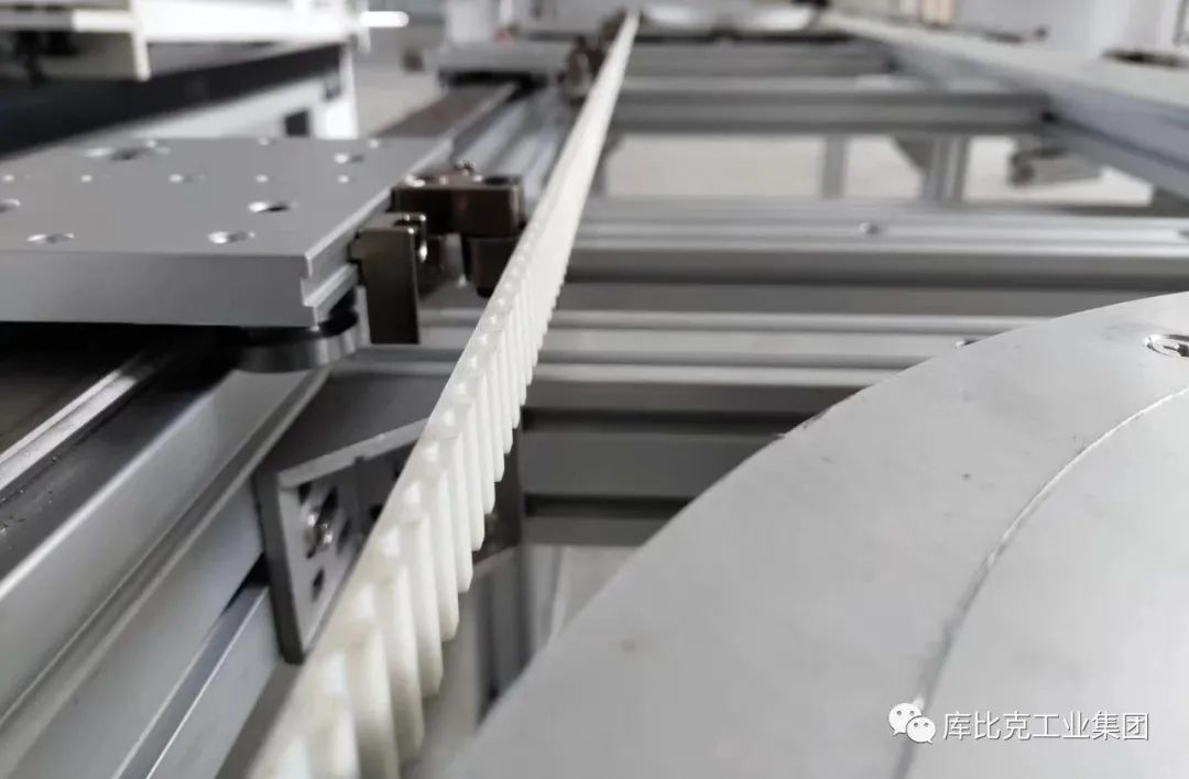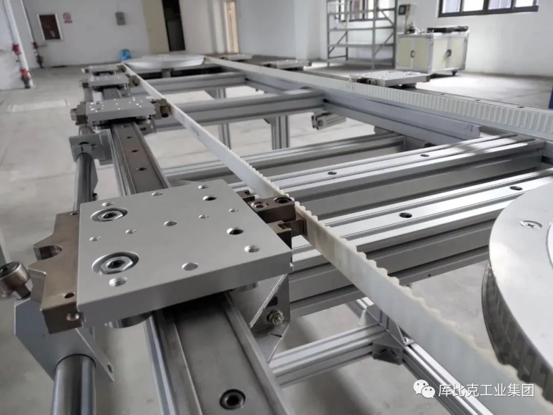 庫比克環(huán)形導(dǎo)軌采用同步帶傳動(dòng)方式,具有諸多優(yōu)點(diǎn),可以滿足絕大部分應(yīng)用的要求。同步帶傳動(dòng)不存在部件之間的摩擦而產(chǎn)生的磨損。采用聚氨酯同步帶,內(nèi)有鋼絲繩,長時(shí)間使用之后依然具有很好的精度保持性;傳動(dòng)噪音小。由于同步帶的這些優(yōu)點(diǎn),同步帶在精密環(huán)形流水線中的應(yīng)用越來越普遍。