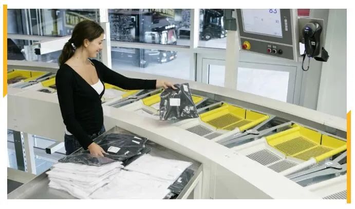 第一次采用的是德馬泰克扁平件分揀系統(tǒng),門店補(bǔ)貨效率較過去顯著增加,達(dá)到10,000件/小時。