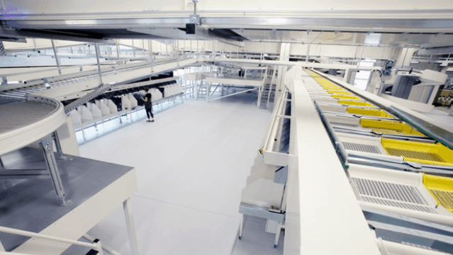 隨著業(yè)務(wù)量不斷增加,The Sting又引進(jìn)了德馬泰克靈活分揀系統(tǒng)FSU,每小時可處理22,000件商品,將門店補(bǔ)貨能力提升一倍。