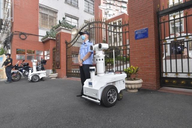 “注意,請(qǐng)佩戴口罩!”昨日上午,在廣州市第十七中學(xué)考點(diǎn)門前,兩臺(tái)“大眼睛”機(jī)器人正在巡邏,密切注視考點(diǎn)門前的情況。這款名為“天巡”的護(hù)考機(jī)器人,搭載兩個(gè)攝像頭,今年增加了體溫檢測(cè)和口罩佩戴檢測(cè)功能。在巡邏過程中,如果檢測(cè)到體溫異常會(huì)自動(dòng)報(bào)警,檢測(cè)到未佩戴好口罩的人也會(huì)發(fā)出提醒。