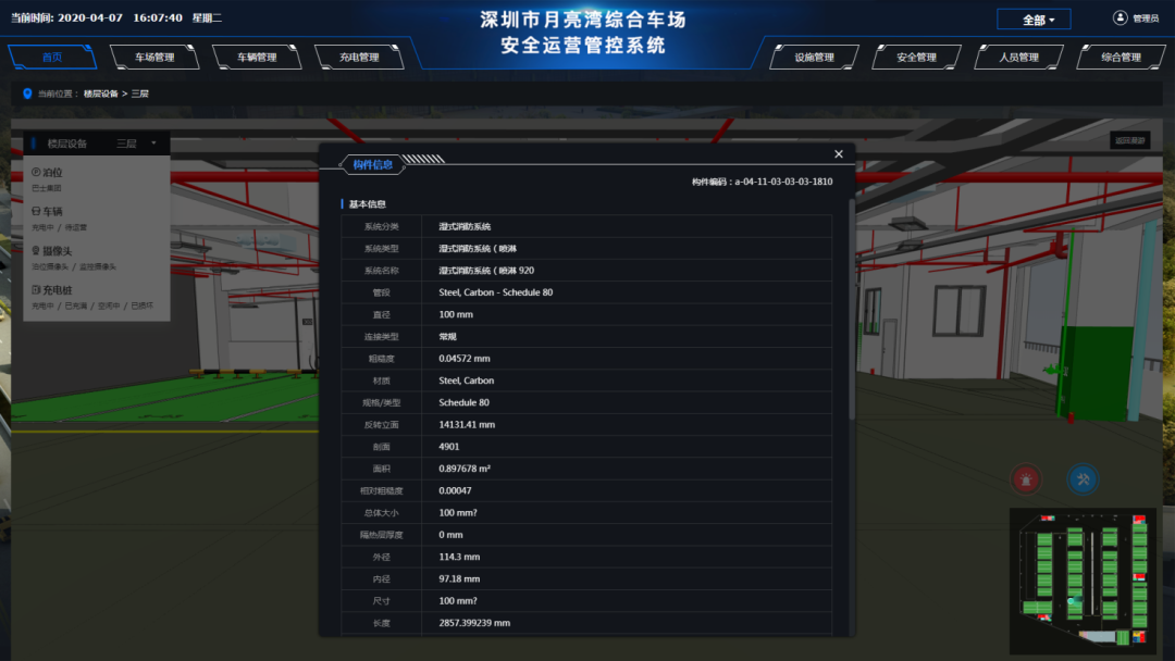 點擊BIM構(gòu)件可知車場中對應(yīng)實體的基礎(chǔ)信息,并可查看相關(guān)的記錄和位置。