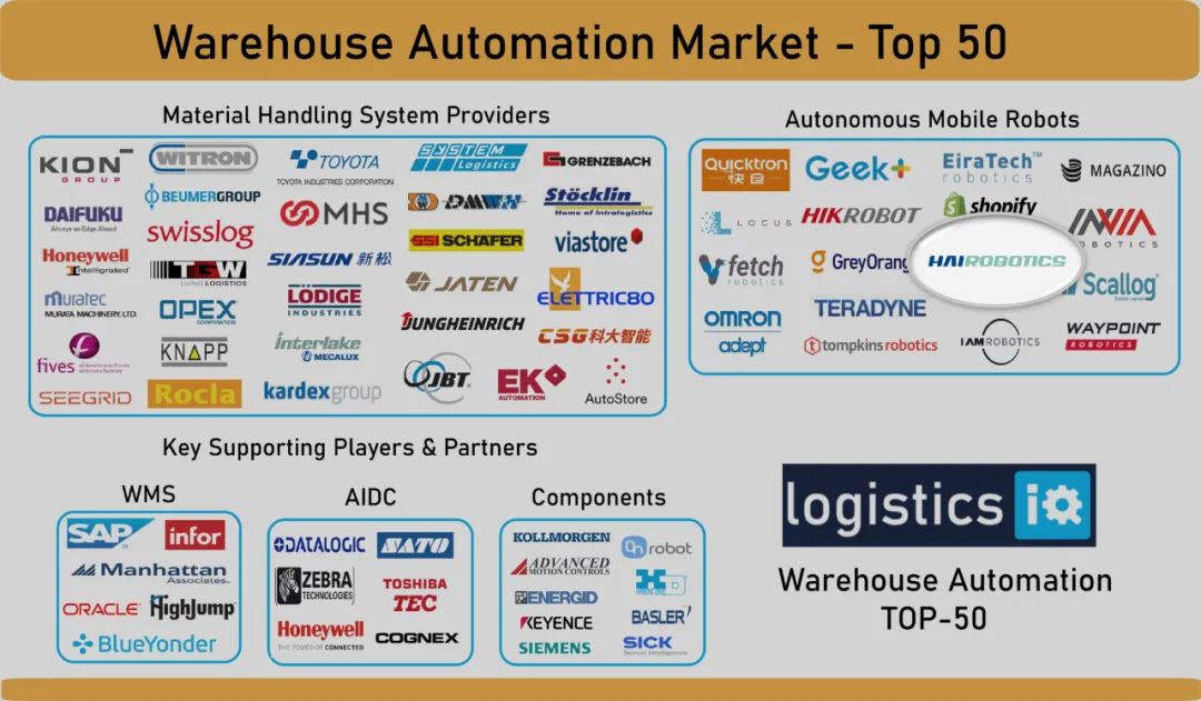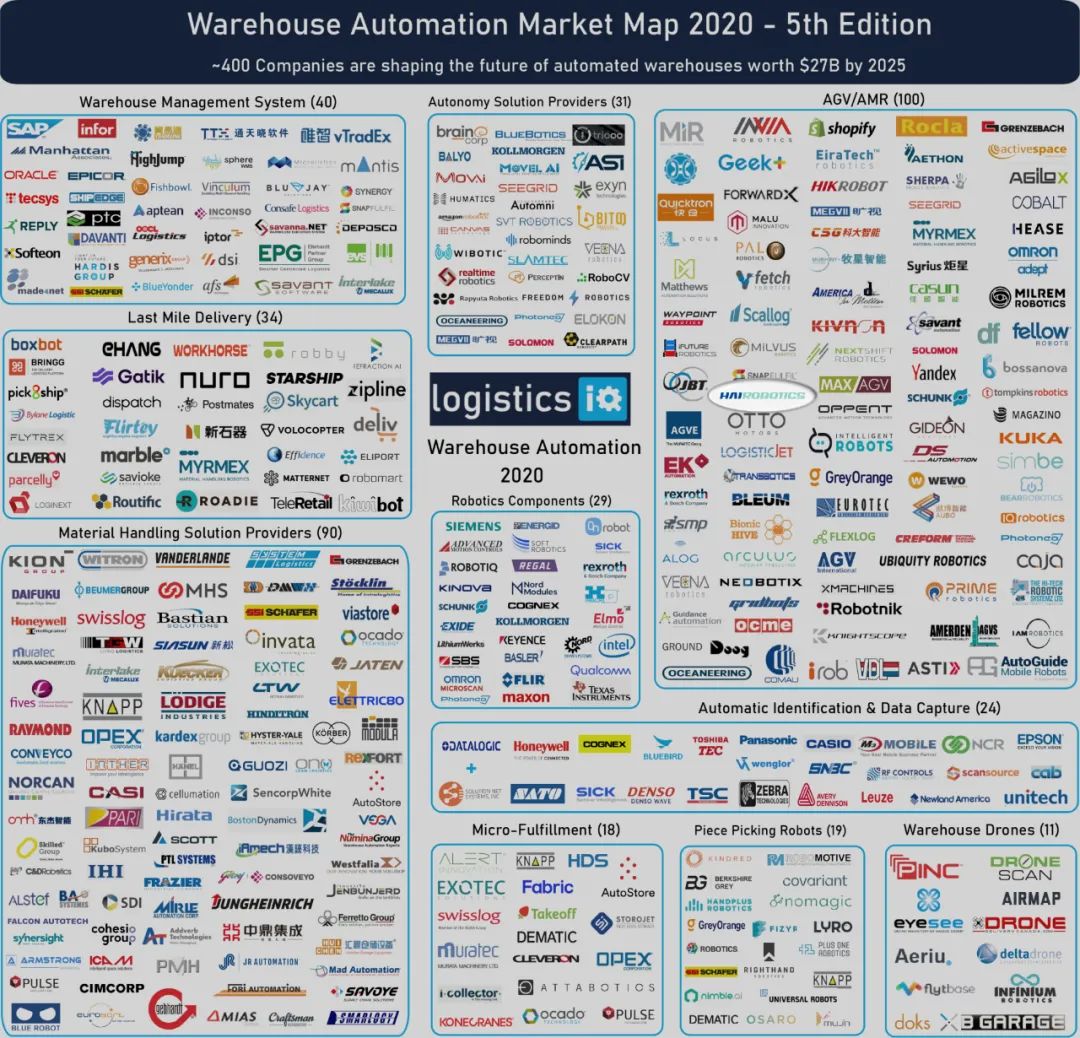 近日,國際權(quán)威物流與供應(yīng)鏈研究&咨詢公司LogisticsIQ發(fā)布最新版《2020年倉儲自動化市場圖譜》,海柔創(chuàng)新入選“AGV/AMR”(自主移動機(jī)器人)板塊,并被評為全球TOP50倉儲自動化公司。