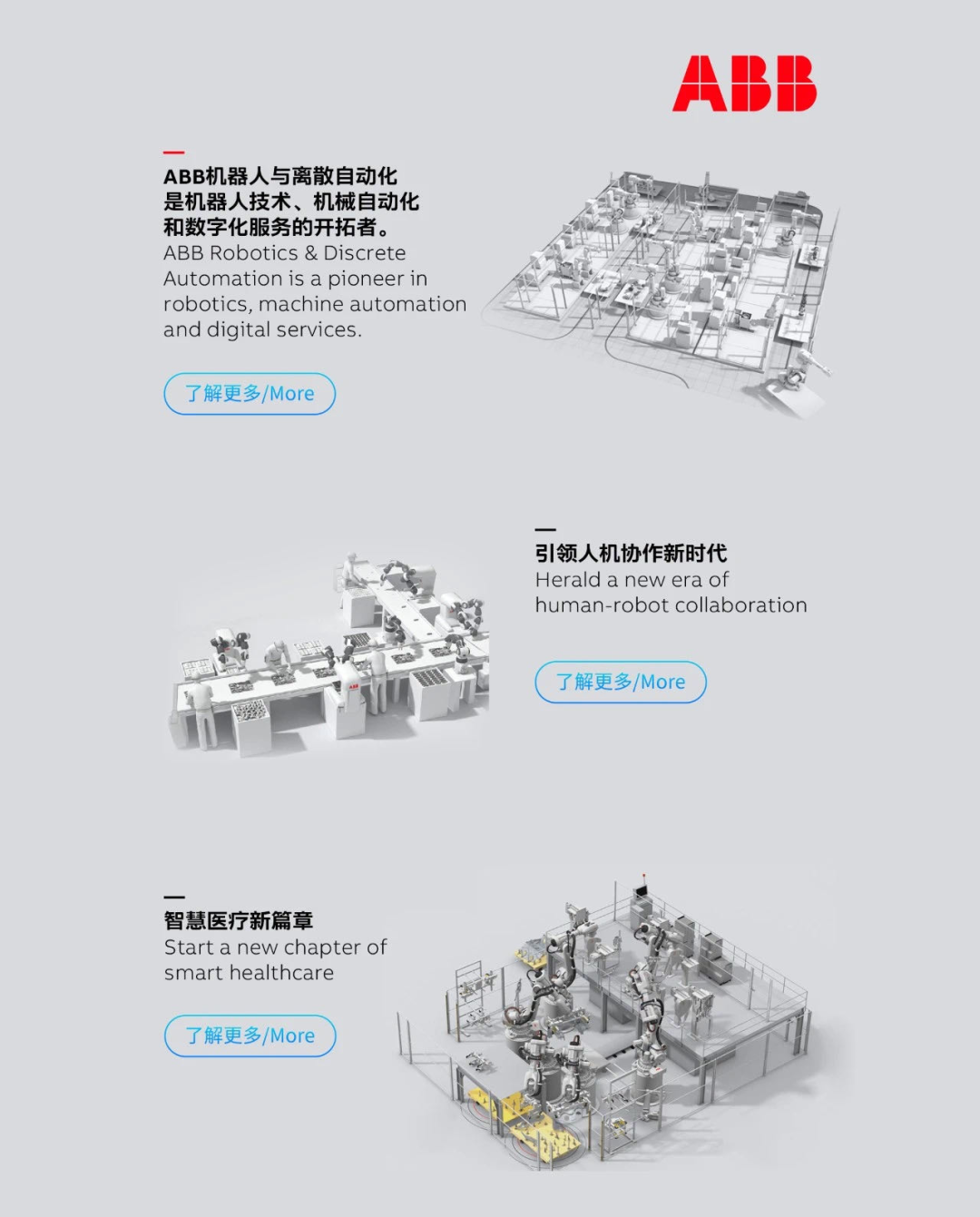 同時(shí),ABB協(xié)作機(jī)器人YuMi也在AI+工業(yè)展館展出。問世五年來,YuMi通過在各行各業(yè)的創(chuàng)新應(yīng)用不斷引領(lǐng)著人機(jī)協(xié)作新時(shí)代的到來。除此之外,還有ABB機(jī)器人智慧醫(yī)療:門診藥方解決方案,配藥自動(dòng)化解決方案,樣本庫自動(dòng)化解決方案,基因檢測(cè)自動(dòng)化解決方案……更多詳情,等你來線上展館親自探索!