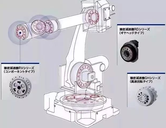 關(guān)節(jié)是工業(yè)機(jī)器人最重要的基礎(chǔ)部件之一,也是運(yùn)動(dòng)的核心部件:精密減速機(jī)。這是一種精密的動(dòng)力傳達(dá)機(jī)構(gòu),其利用齒輪的速度轉(zhuǎn)換器,將電機(jī)的回轉(zhuǎn)數(shù)減速到所要的回轉(zhuǎn)數(shù),并得到較大轉(zhuǎn)矩的裝置,從而降低轉(zhuǎn)速,增加轉(zhuǎn)矩。