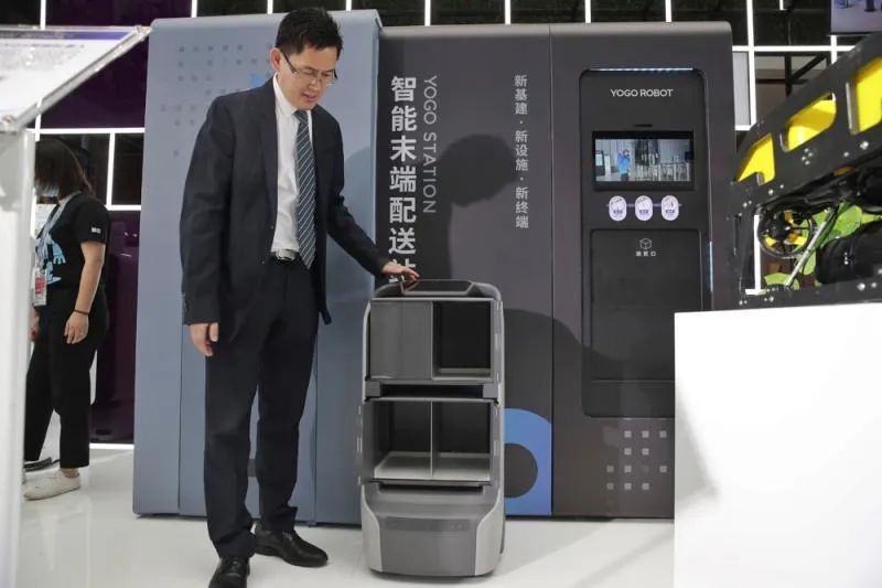 開幕式現(xiàn)場,除了AI女團(tuán)出道,三“馬”二“宏”同臺引起熱議外,本次大會的線下機(jī)器人特展也引人注目。上海有個(gè)機(jī)器人有限公司(簡稱YOGO ROBOT)受上海經(jīng)信委邀請,在開幕式上發(fā)布了最新的智能末端配送站,它為樓宇提供高效便捷的無接觸配送服務(wù),將AI人工智能應(yīng)用到人們的日常生活中,在現(xiàn)場斬獲了媒體觀眾的一致好評。