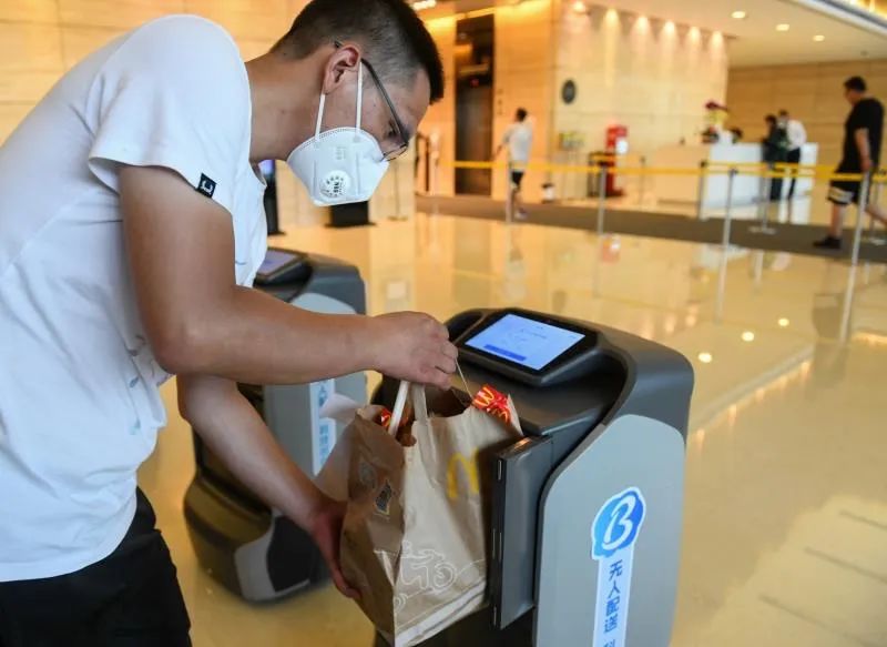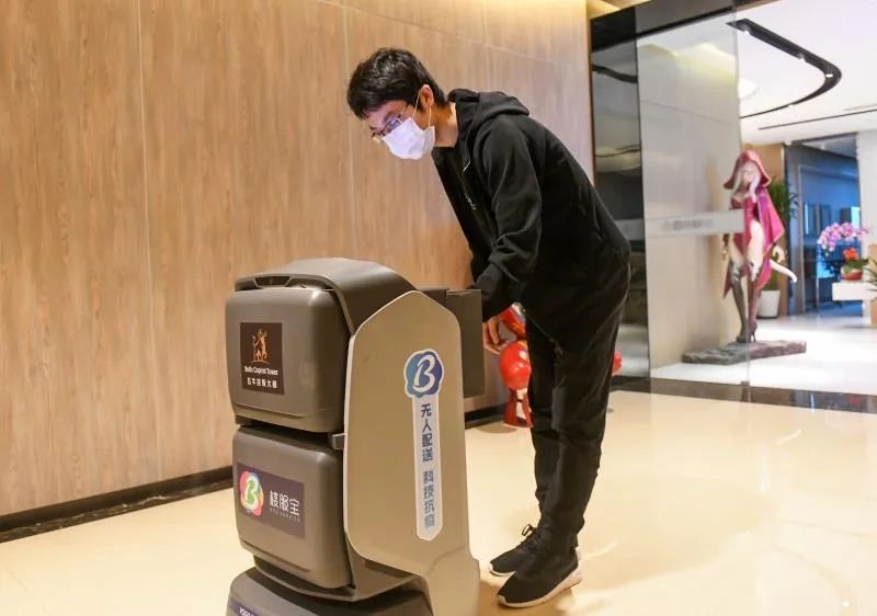 據(jù)白領小張介紹,他們的寫字樓有2000多位白領,但只有3部電梯,午高峰擠電梯堪比擠高峰地鐵。自從有了機器人,外賣就可以“自己送上樓了”。她已經(jīng)使用機器人送餐三個多月了,機器人會提前打電話提醒她取餐,每單外賣的等待時間大約只有5分鐘。