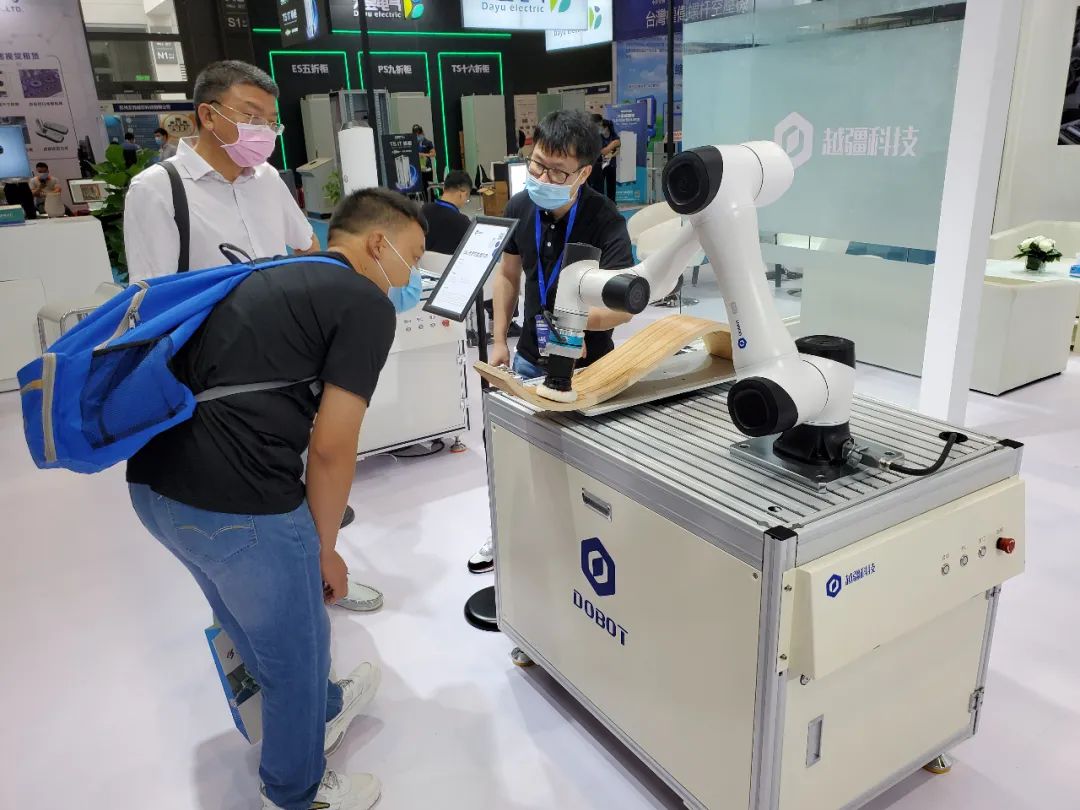根據(jù)現(xiàn)場(chǎng)工作人員介紹,越疆科技的新一代全感知機(jī)器人不同于傳統(tǒng)機(jī)器人的觸碰停止,而是在人員靠近到一定距離之內(nèi)就能感應(yīng)到,并在安全距離內(nèi)自動(dòng)停止動(dòng)作。這樣極大降低對(duì)工人造成損傷的風(fēng)險(xiǎn),在非接觸式感知技術(shù)領(lǐng)域越疆科技達(dá)到了業(yè)界領(lǐng)先水平。