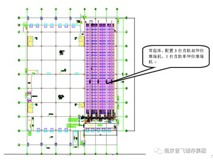 常溫庫:方案總規(guī)劃8138個貨位,通過4個巷道,4臺堆垛機(jī)以及進(jìn)出庫輸送設(shè)備,實現(xiàn)自動出入庫功能。復(fù)合作業(yè)效率156托/小時(進(jìn)+出)