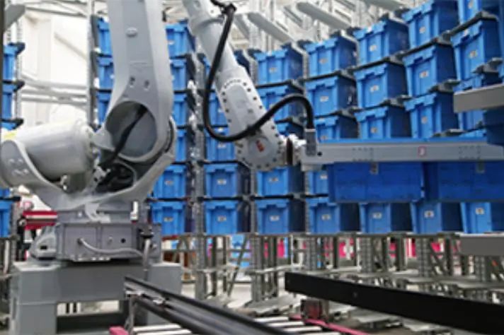 料箱式自動倉庫可以使用容器、箱子或貨架來儲存小部件,并可存儲在貨架中的角鋼橫梁或架子上,極為節(jié)省空間,有效提升空間利用率。同時機器人料箱式自動倉庫利用在托盤、貨架上安裝的RFID電子標簽,使用機器人手臂進行存取、揀選,達到提高揀貨速度,降低錯誤率,解放勞動力從而節(jié)約管理成本的目的,并實現倉庫中較高的轉運效率。