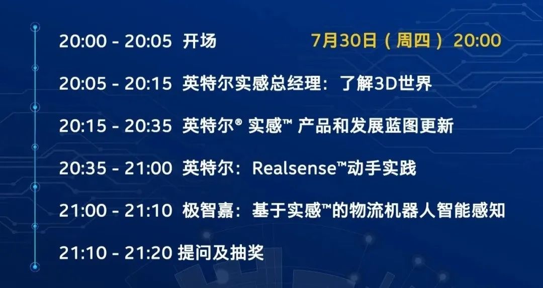 7月30日20點(diǎn),英特爾實(shí)感產(chǎn)品事業(yè)部中國(guó)區(qū)銷售總監(jiān)何火高、英特爾RealSense?系統(tǒng)集成測(cè)試和技術(shù)支持高級(jí)工程師孫湘裕、極智嘉研發(fā)總監(jiān)陳超以及特邀答疑嘉賓英特爾實(shí)感技術(shù)事業(yè)部亞洲區(qū)高級(jí)經(jīng)理劉偉將給大家?guī)?lái)英特爾?實(shí)感?產(chǎn)品和發(fā)展藍(lán)圖更新,Realsense?動(dòng)手實(shí)踐,極智嘉基于實(shí)感?的物流機(jī)器人智能感知,一起來(lái)共同探討智能感知技術(shù)的應(yīng)用實(shí)踐!