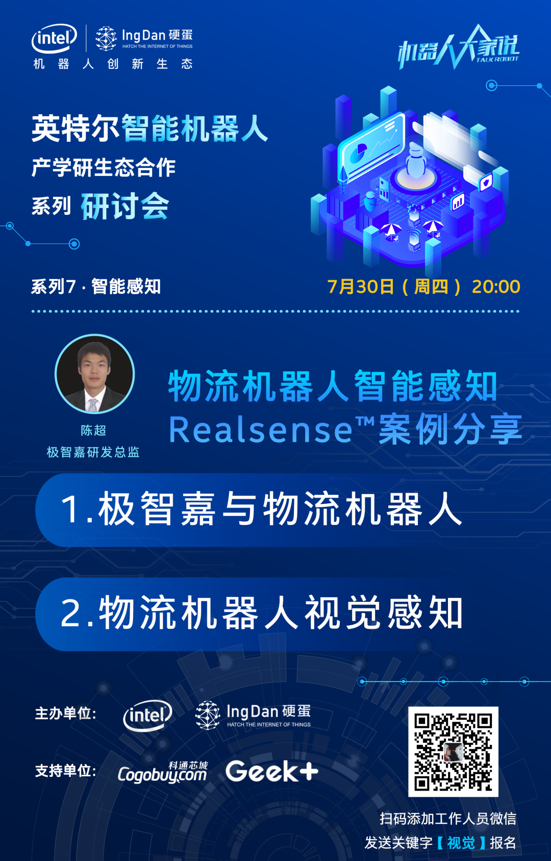 在英特爾智能機(jī)器人產(chǎn)學(xué)研生態(tài)合作系列研討會(huì)中,大咖們將會(huì)圍繞物流機(jī)器人中被廣泛應(yīng)用的英特爾? 實(shí)感?技術(shù),從它的發(fā)展現(xiàn)狀、技術(shù)解析以及產(chǎn)品應(yīng)用落地,再到機(jī)器人創(chuàng)新生態(tài)合作伙伴極智嘉如何利用這項(xiàng)技術(shù)推出高品質(zhì)的物流機(jī)器人產(chǎn)品,為物流機(jī)器人同行以及計(jì)劃引入機(jī)器人的用戶提供更深度的技術(shù)內(nèi)容。Realsense?技術(shù)的優(yōu)勢(shì)在哪里?它適合我們公司的產(chǎn)品嗎?我該如何上手這套產(chǎn)品?物流機(jī)器人頭部公司又是如何實(shí)現(xiàn)產(chǎn)品落地的?