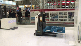 該車型采用激光 SLAM 導(dǎo)航,回轉(zhuǎn)半徑小,定位精度高,柔性運動控制,最大運行速度可達1.2m/s,