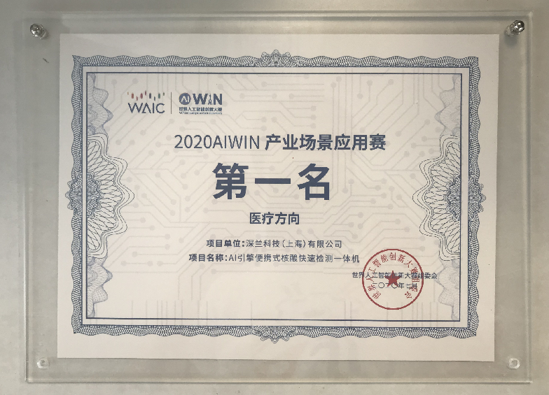 AI引擎核酸檢測一體機(jī)獲2020 AIWIN冠軍在今年剛剛過去的2020世界人工智能大會(huì)上,深蘭科技研發(fā)的基于三代測序的核酸檢測一體機(jī),憑借領(lǐng)先的AI醫(yī)療技術(shù)從600余個(gè)產(chǎn)業(yè)場景應(yīng)用賽事項(xiàng)目中脫穎而出,在2020 AIWIN醫(yī)療賽道中奪魁,近日也收到組委會(huì)發(fā)來的冠軍獎(jiǎng)牌。