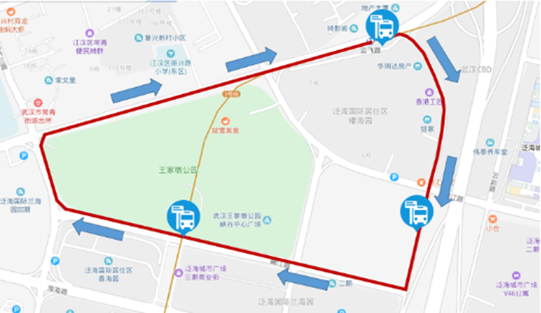 武漢CBD智能網(wǎng)聯(lián)汽車示范路段武漢CBD熊貓智能公交車首期測試路段將從云霞路出發(fā),經(jīng)嫩江路、商務(wù)西路、云飛路的合圍路段,全場2.2公里,途經(jīng)CBD多元業(yè)態(tài)。此次道路測試將以“單車智能”測試為主,后續(xù)將進(jìn)入示范應(yīng)用階段。