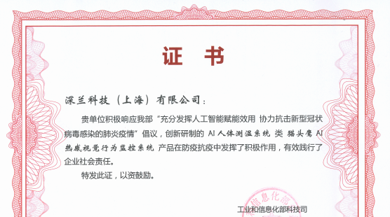AI引擎核酸檢測一體機(jī)冠軍獎(jiǎng)牌核酸檢測一體機(jī)是一款可進(jìn)行病毒快速檢測的基因測序類儀器,相比同類產(chǎn)品具有明顯優(yōu)勢。除了提供陽性/陰性的檢測結(jié)果,還能提供樣本病原物種信息,濃度以及跟蹤病毒變異狀況。具有廣譜病原體的識(shí)別能力,不僅能快速準(zhǔn)確、高效便捷的識(shí)別出當(dāng)前測序樣本是否包含某種病毒,還能檢測出是否包含與某種病毒相似的未知病毒。3、抗疫有功,深蘭貓頭鷹獲工信部嘉獎(jiǎng)近日,作為“新基建”在AI領(lǐng)域的技術(shù)代表,深蘭科技因積極研發(fā)AI熱感視覺行為監(jiān)控系統(tǒng)-貓頭鷹在內(nèi)的防疫產(chǎn)品,并將相關(guān)解決方案及智能化產(chǎn)品服務(wù)武漢、上海、北京等多地的抗疫防疫工作,還特別收到了工信部發(fā)來的證書獎(jiǎng)?wù)隆?/p>