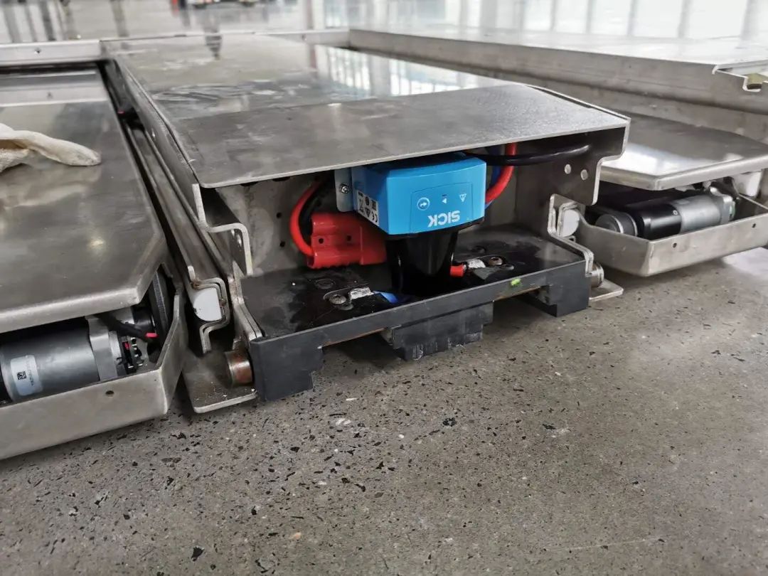 只見托盤機器人在一個木制托盤前快速停下,先是向木制托盤下伸出兩只“手臂”,待固定好后將托盤緩緩抬升一定高度,然后整個機器人就迅速鉆入托盤下方,然后將貨物運送到指定位置。與傳統(tǒng)的物流機器人(AGV)相比,省去了托盤到貨架這一環(huán)節(jié)。