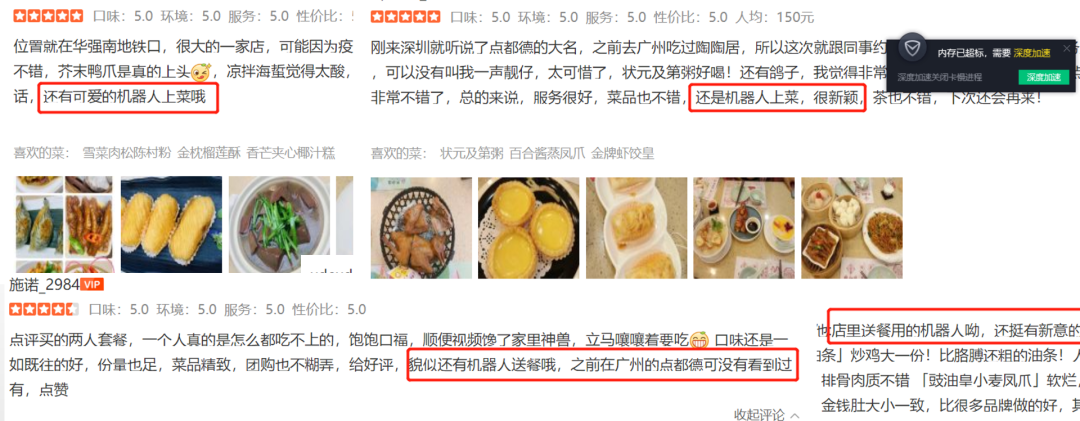 另外,在大眾評論上,使用機器人與否的餐廳評論風格也截然不同,出現(xiàn)了很多稱贊機器人的聲音。