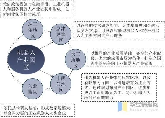 資料來(lái)源:華經(jīng)產(chǎn)業(yè)研究院整理三、機(jī)器人產(chǎn)業(yè)園區(qū)發(fā)展特征及前景各個(gè)地區(qū)的機(jī)器人產(chǎn)業(yè)園區(qū)有不同的發(fā)展特點(diǎn),如京津冀地區(qū)的機(jī)器人產(chǎn)業(yè)園區(qū)重技術(shù)、長(zhǎng)三角重制造。不同地區(qū)機(jī)器人產(chǎn)業(yè)園區(qū)發(fā)展特點(diǎn)分析