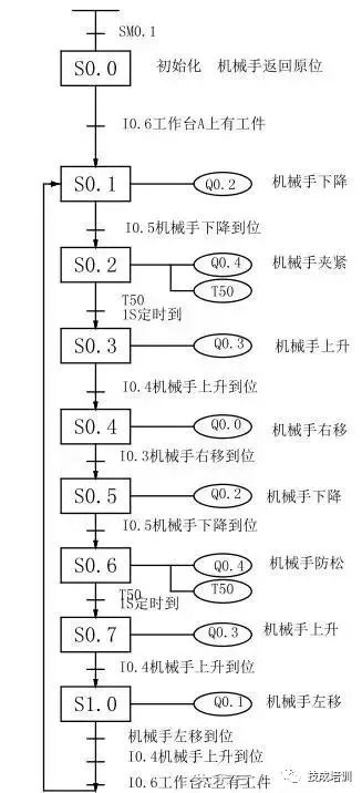 2.機械手的初始狀態(tài)(原點條件)是機械手應(yīng)停在工位A的上方,SQ1、SQ3均閉合;