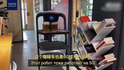 例如在充滿活力的5G科技感的咪咕咖啡店里,作為5G技術(shù)應(yīng)用之一的配送機(jī)器人歡樂送正在有條不紊地為各桌顧客運(yùn)送5G +系列飲品,包括鴛鴦系列5G + 4G咖啡,果酸系列5G + AICDE咖啡等。