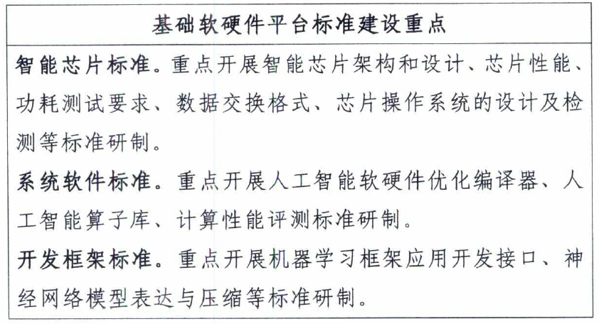 2.系統(tǒng)軟件標(biāo)準(zhǔn)。規(guī)范人工智能軟硬件優(yōu)化編譯器、人工智能算子庫、人工智能軟硬件平臺計算性能等,促進(jìn)軟硬件平臺的協(xié)同優(yōu)化。