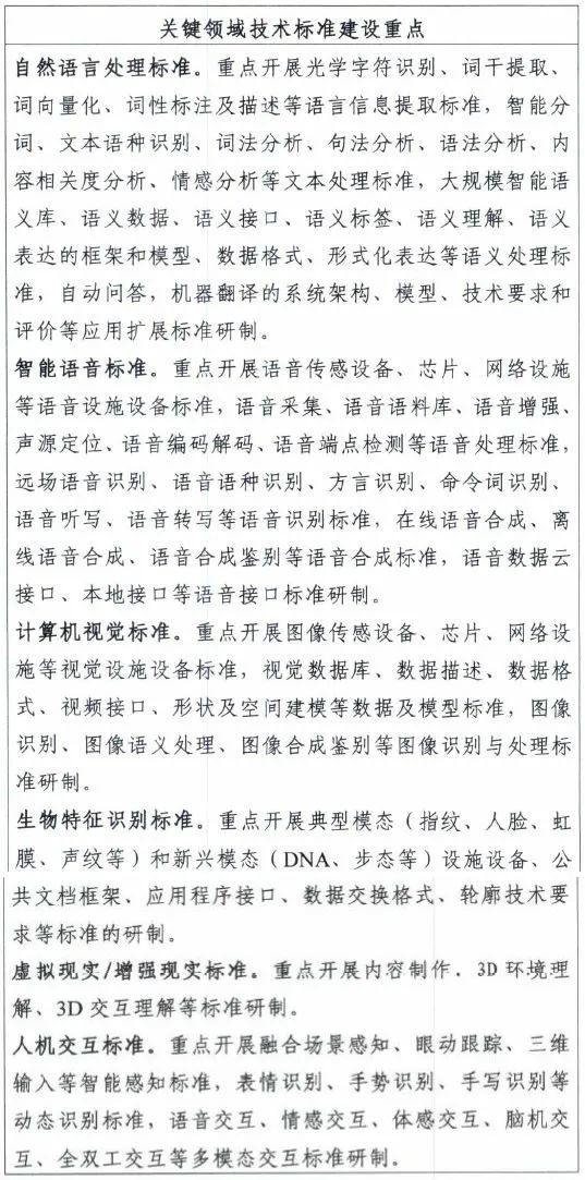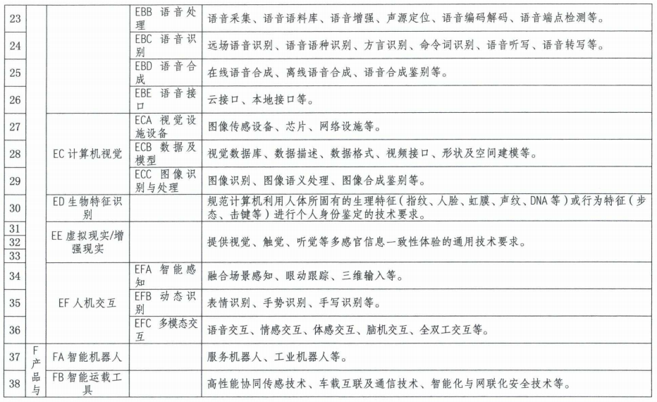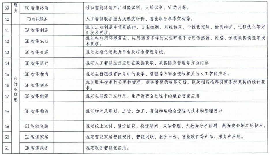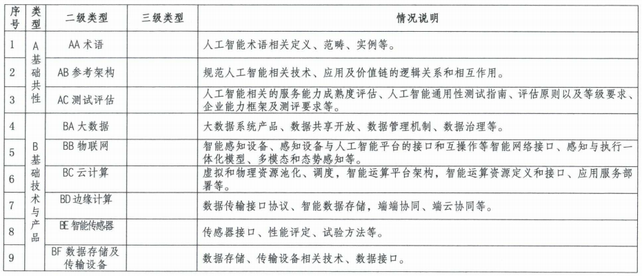 附表:人工智能標(biāo)準(zhǔn)研制方向明細(xì)表