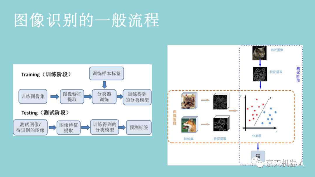 圖4-5則是以貓和狗為識(shí)別目標(biāo)的一個(gè)圖像識(shí)別系統(tǒng)。系統(tǒng)需要一些貓和狗的圖像,通過(guò)這些圖像學(xué)習(xí)出貓和狗各自的特征(例如貓和狗的輪廓不一樣),再通過(guò)對(duì)貓狗特征的學(xué)習(xí)獲得能夠分辨貓狗的分類(lèi)器。在訓(xùn)練好貓狗分類(lèi)器以后,當(dāng)有新的貓或者狗的圖像輸入到系統(tǒng)時(shí),系統(tǒng)首先將圖像轉(zhuǎn)換成特征,然后使用已經(jīng)學(xué)習(xí)好的貓狗分類(lèi)器就能自動(dòng)識(shí)別出是貓還是狗。需要注意的是,系統(tǒng)只能對(duì)已經(jīng)學(xué)習(xí)過(guò)的類(lèi)別進(jìn)行識(shí)別。例如,識(shí)別系統(tǒng)只訓(xùn)練學(xué)習(xí)了狗和貓的圖像,那么該系統(tǒng)只能識(shí)別狗和貓的圖像。如果你給這個(gè)系統(tǒng)一只狐貍的圖像,該系統(tǒng)則無(wú)法識(shí)別。