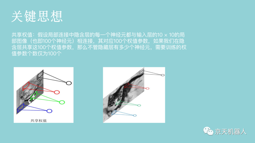 卷積操作可以看成是提取特征的方式,不同的卷積核能夠得到圖像的不同映射下的特征,稱之為特征映射(Feature Map)。如果把一個(gè)卷積核看成提取一種特征,那么我們可以通過(guò)使用多個(gè)不同的卷積核來(lái)達(dá)到提取多個(gè)特征的目的。如果有64個(gè)卷積核,那么就可以提取64種特征,兩層之間的權(quán)值參數(shù)也僅為100×64= 6400個(gè)。
