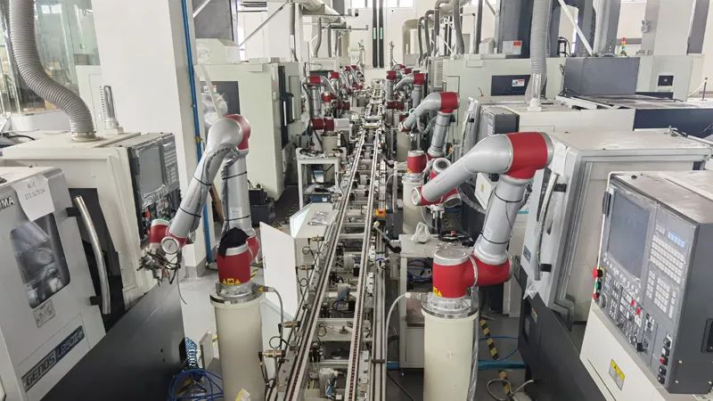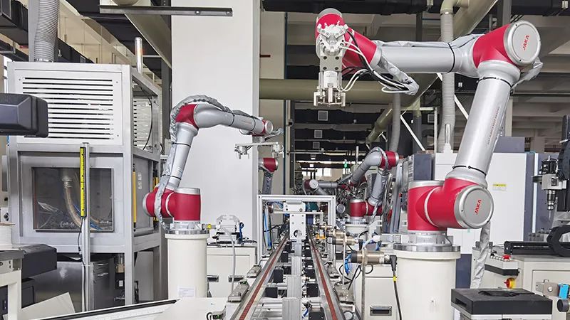 項(xiàng)目中共部署了幾十臺(tái)JAKA Zu 12協(xié)作機(jī)器人,通過總控分別給JAKA Zu 12協(xié)作機(jī)器人下發(fā)任務(wù),協(xié)作機(jī)器人配合線體和應(yīng)用設(shè)備做自動(dòng)上下料工作,根據(jù)產(chǎn)品的工藝需求,JAKA Zu 12協(xié)作機(jī)器人配合車床車削,加工中心精洗、清洗工位清潔、三坐標(biāo)檢測、螺紋檢測、產(chǎn)品浸油等,實(shí)現(xiàn)整線自動(dòng)化生產(chǎn)。本次JAKA Zu 12協(xié)作機(jī)器人扮演的角色是串聯(lián)生產(chǎn)工位與流水線的配合,與單機(jī)工作不同,產(chǎn)線上JAKA Zu 12協(xié)作機(jī)器人每套動(dòng)作都需要與總控進(jìn)行交互,并且全流程產(chǎn)品NG實(shí)時(shí)監(jiān)控。SCADA系統(tǒng)監(jiān)控獲取每一臺(tái)協(xié)作機(jī)器人的實(shí)時(shí)信息,每個(gè)產(chǎn)品在每個(gè)環(huán)節(jié)進(jìn)行跟蹤,對數(shù)據(jù)分析和管理。
