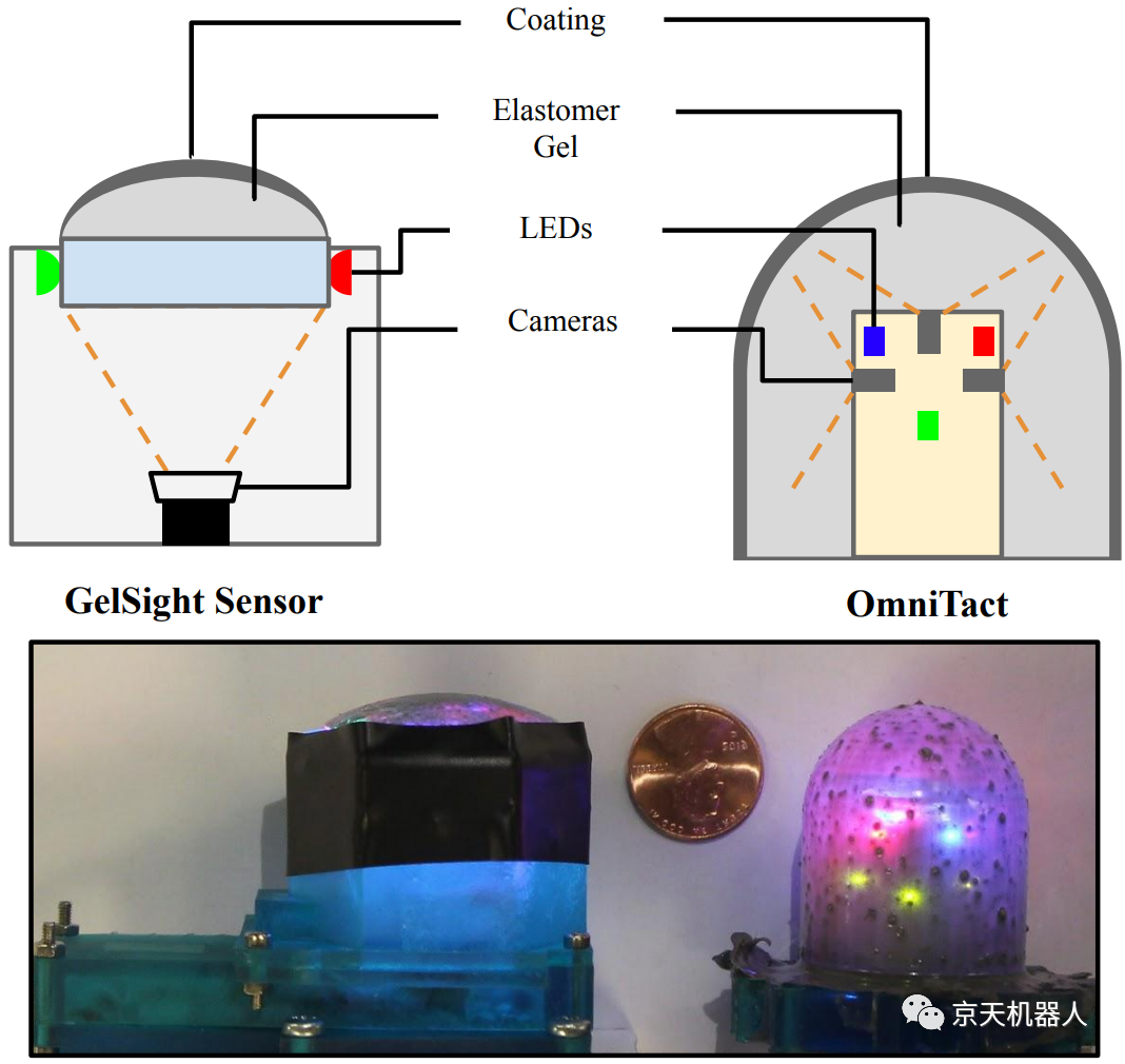 GelSight樣式傳感器(左側(cè))與OmniTact傳感器(右側(cè))的比較