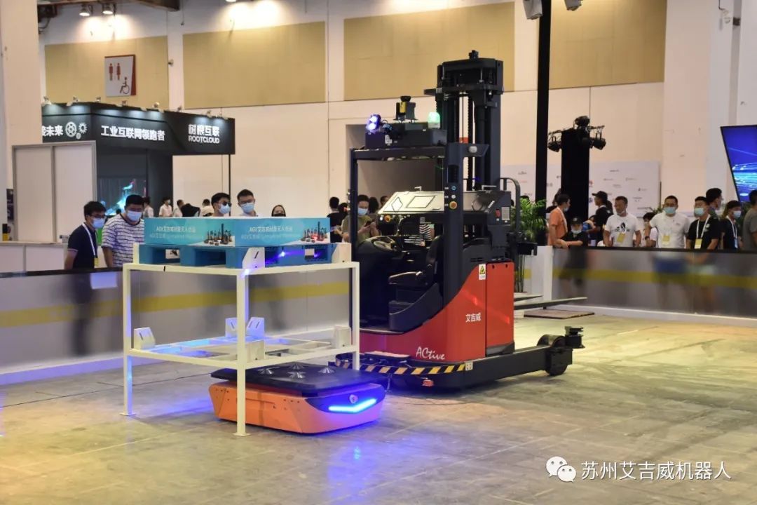本次艾吉威展廳內(nèi)部共有四臺無反系列AGV機(jī)器人,通過一個調(diào)度系統(tǒng)“任務(wù)分流”,各AGV之間協(xié)同作業(yè),叉車AGV展示精準(zhǔn)叉取,堆垛;小車AGV 靈活,頂升,展示方案模擬客戶現(xiàn)場生產(chǎn)搬運運輸及不同車型之間的配合調(diào)度。
