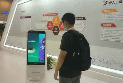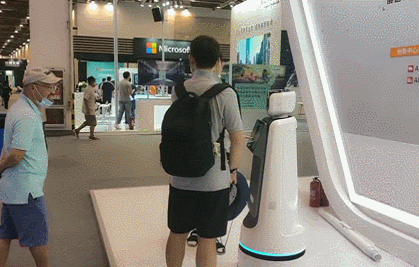 在展會(huì)現(xiàn)場(chǎng)“自主穿梭”的運(yùn)動(dòng)底盤(pán)敏寶,吸引了多家機(jī)器人服務(wù)商前來(lái)咨詢(xún)定制化開(kāi)發(fā)需求,配有敏寶的機(jī)器人產(chǎn)品可應(yīng)用于金融、政務(wù)、零售、商場(chǎng)、酒店等不同商用場(chǎng)景。