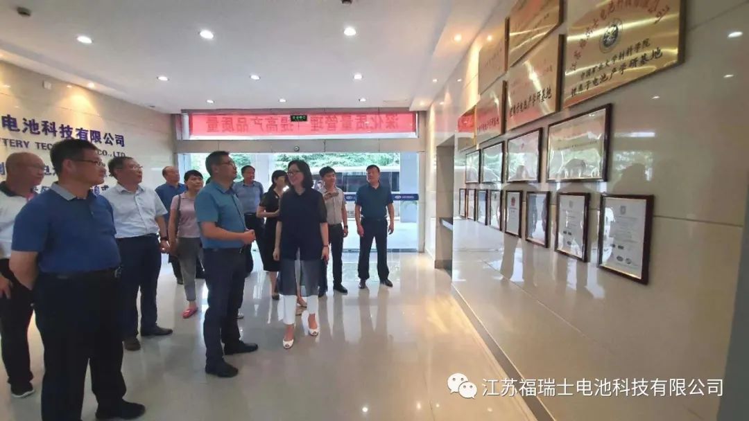 2020年8月18號上午,安徽省宿州市蕭縣縣委書記黃韡書記帶領(lǐng)招商局、建設(shè)局、環(huán)保局等領(lǐng)導(dǎo)班子成員到江蘇福瑞士電池科技有限公司進行參觀考察。福瑞士總經(jīng)理姚紅巖女士、中國礦業(yè)大學(xué)周梅華博導(dǎo)陪同參觀。