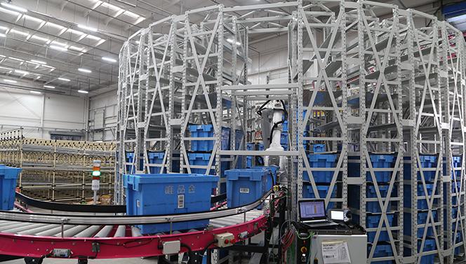 意歐斯自動(dòng)化倉庫是利用機(jī)器人機(jī)械手以料箱為存儲(chǔ)單元,在料箱環(huán)形圈內(nèi)進(jìn)行360°的旋轉(zhuǎn)分揀貨物。相對于其它倉儲(chǔ)方式,機(jī)器人料箱式自動(dòng)倉庫可以使用容器、箱子或貨架來儲(chǔ)存小部件,能夠充分利用貨架的空間高度,提高存儲(chǔ)空間利用率;機(jī)器人料箱式自動(dòng)倉庫利用在托盤、貨架上安裝的RFID電子標(biāo)簽,使機(jī)器人手臂在進(jìn)行存取、揀選貨物時(shí),可縮短單件貨物的拾取時(shí)間,降低錯(cuò)誤率,節(jié)省存儲(chǔ)貨物的時(shí)間成本和人工成本,從而實(shí)現(xiàn)自動(dòng)化倉庫較高的轉(zhuǎn)運(yùn)效率。
