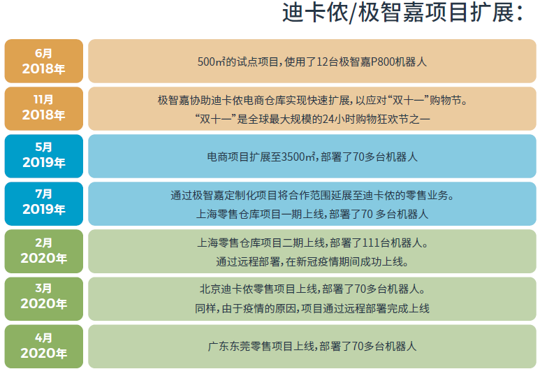 今年3-4月,極智嘉為迪卡儂在中國(guó)的兩座全新訂單履行中心部署上百臺(tái)極智嘉AMR機(jī)器人。在嚴(yán)格遵守防疫規(guī)定的前提下,該項(xiàng)目?jī)H用三個(gè)月就遠(yuǎn)程完成了部署。此前,雙方已成功合作兩年,迪卡儂的上海電商和門店訂單履行中心項(xiàng)目均取得了卓越成果。