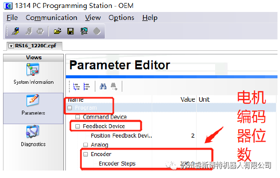 按照下圖所示,調(diào)整電機(jī)編碼器位數(shù),編碼器上有寫明?;蛘甙凑崭脑烨暗?a href="http://m.wnmc.org.cn/sell/search.php?keyword=%E5%8F%89%E8%BD%A6" title="叉車" target="_blank">叉車的1220E中的參數(shù)讀出去也可以的。