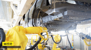 工藝設(shè)備:采用3D旋轉(zhuǎn)膠槍,可安裝3個(gè)槍嘴,每個(gè)槍嘴的型號(hào),角度可以獨(dú)立設(shè)置,可達(dá)性好,可以滿足車身不同部位的涂膠工藝要求。采用電子伺服定量缸實(shí)現(xiàn)精確的流量控制。配備珀?duì)柼麊卧獪乜貙?shí)現(xiàn)對(duì)膠溫的加熱/制冷迅速溫控,保持材料粘度的恒定。